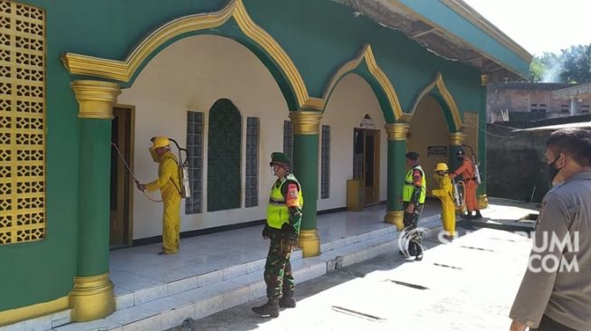 SUKABUMIUPDATE.com - Menjelang pelaksanaan shalat Jumat, empat masjid besar di wilayah Desa Citarik, Kecamatan Palabuhanratu, Kabupaten Sukabumi distrerilisasi dengan cairan disinfektan. Langkah ini untuk memastikan kesehatan para jemaah masjid ditengah ancaman penyebaran wabah corona.