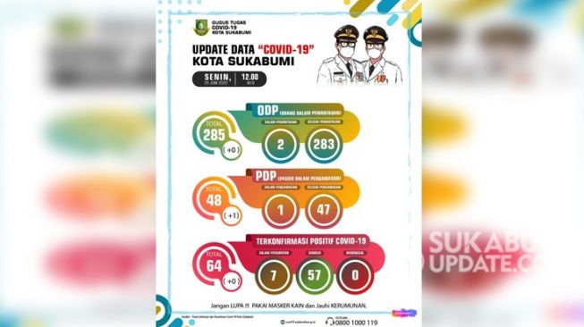SUKABUMIUPDATE.com - Media Center Pusat Informasi dan Koordinasi Covid-19 Kota Sukabumi mencatat satu tambahan Pasien Dalam Pengawasan (PDP) dalam perkembangan penanganan terbaru Covid-19 hari ini, Senin (29/6/2020).