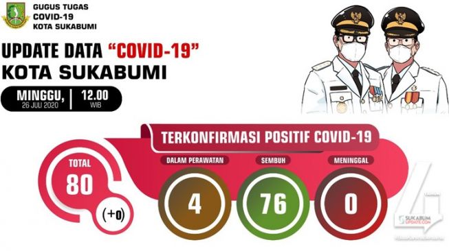 Hari ini, Minggu (26/7/2020) Media Center Pusat Informasi dan Koordinasi Covid-19 Kota Sukabumi hari ini mencatat tak ada penambahan, alias data melandai.