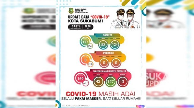 Berdasarkan data hari Sabtu (12/9/2020), terdapat 21 pasien terkonfirmasi positif Covid-19 baru di Kota Sukabumi.
