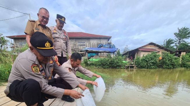 Dinas Perikanan Kabupaten Empat Lawang mengandeng Polres Empat Lawang menabur ribuan benih ikan, Selasa (13/12/2022).