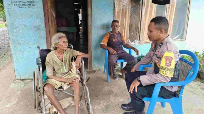 Bhabinkamtibmas Desa Lohiatala, Aipda A.M. Rumakat, menjenguk warga binaannya yang mengalami sakit. Adalah Ibu Yakoba Tuhuter, warga Desa Lohiatala, Kecamatan Kairatu, Kabupaten Seram Bagian Barat (SBB).