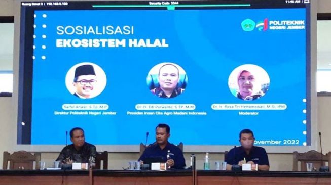 Politeknik Negeri Jember (Polije) menggelar sosialisasi ekosistem halal dikalangan dosen dan mahasiswa, Selasa (15/11/2022).