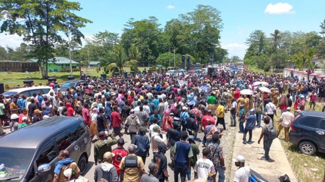 TIMESINDONESIA – Ribuan masyarakat ikut dalam aksi damai menolak kriminalisasi terhadap Plt. Bupati Mimika Johannes Rettob, Selasa (7/3/2023). Massa aksi berkumpul di area Graha Eme Neme Yauware dan bergerak bersama menuju Kantor Kejari Mimika.