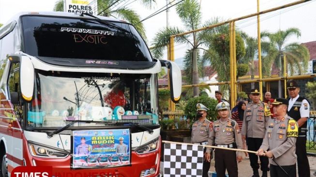 TIMESINDONESIA – Kepolisian Resor Pacitan (Polres Pacitan) memberangkatkan dua armada bus tujuan Surabaya, Jawa Timur dalam program Balik Mudik Gratis dengan membawa 94 warga setempat yang hendak kembali bekerja usai libur Lebaran 2023.