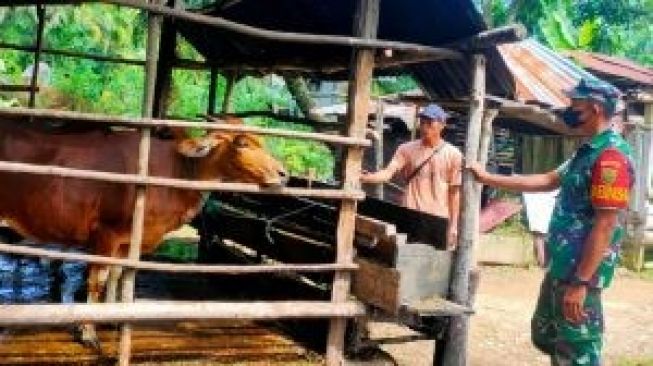 “Untuk dilakukannya kegiatan tersebut mengantisipasi wabah PMK dengan melihat langsung hewan peternak yang kemungkinan adanya ciri-ciri hewan terjangkit penyakit PMK,” kata Babinsa.