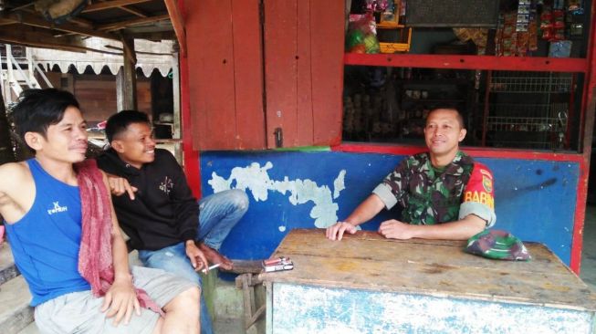 Sertu Suhardi melaksanakan kegiatan Komsos ke warga binaan, sebagai hubungan mitra karibnya, dengan membahas tentang kondisi wilayah.