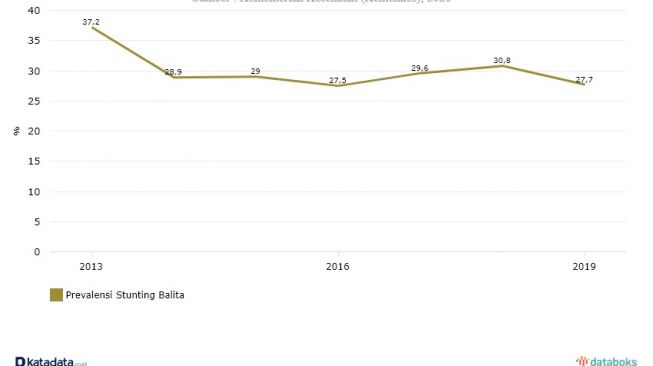 Pada 2018 prevalensinya 30,8 persen dan menurun pada tahun 2019 menjadi 27,2 persen.