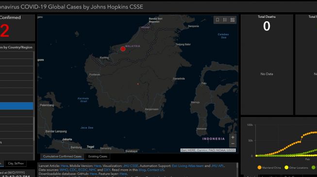 ZONAUTARA.COM – Peta realtime dan interaktif yang menggambarkan sebaran dan korban virus corona atau COVID-19 diupdate. Diakses pada Senin, 2 Maret 2020, pukul 13.00 WITA, peta itu telah menunjukkan hotspot di Indonesia.