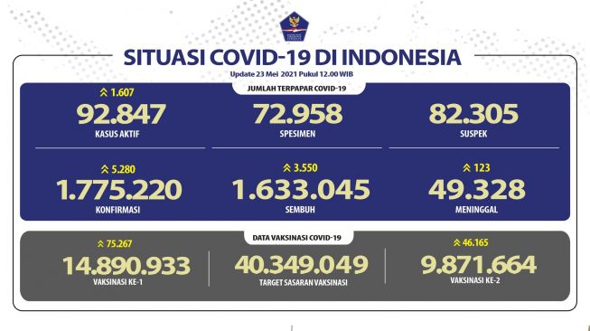 ZONAUTARA.com – Pemerintah kembali mengumumkan perkembangan kasus konfirmasi harian baru Covid-19 di Indonesia hari ini, Minggu (23/5/2021).