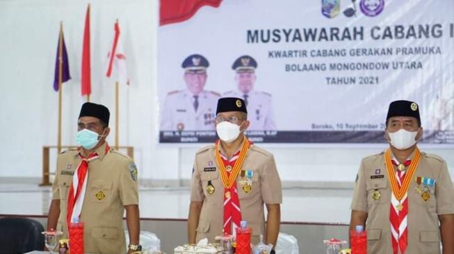 Sekertaris Daerah (Sekda) Bolaang Mongondow Utara (Bolmut) Asripan membuka musyawarah cabang Ke III Kwartir cabang Pramuka Kabupaten Bolmut bertempat di aula hotel Boroko Kecamatan Kaidipang, Jumat 10 September 2021.