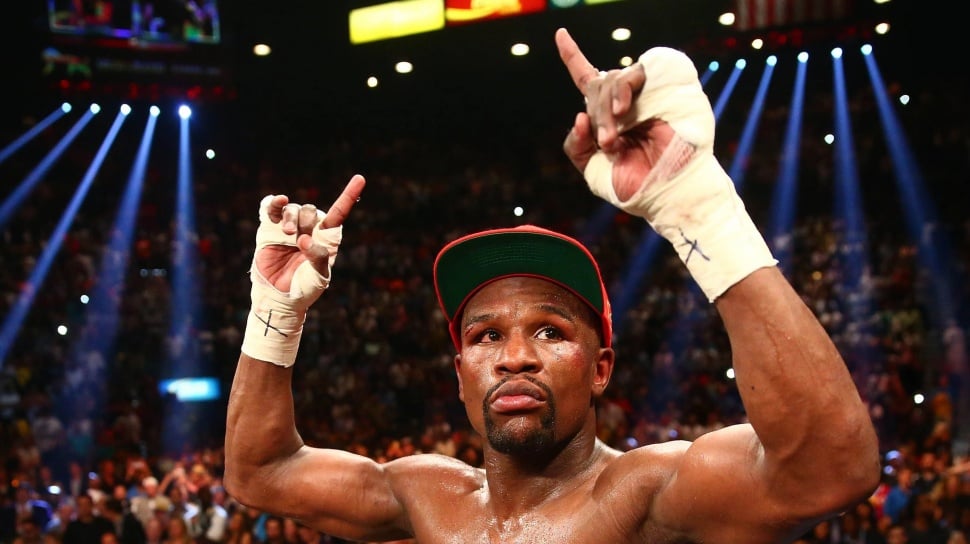 ![Reaksi legenda tinju dunia Floyd Mayweather Jr. usai mengalahkan rivalnya Manny Pacquiao pada pertarungan di MGM Grand, Las Vegas, Amerika Serikat, Sabtu (2/5/2015). [AFP/John Gurzinski]](https://media.suara.com/pictures/653x366/2020/04/23/36933-floyd-mayweather-jr.jpg)
