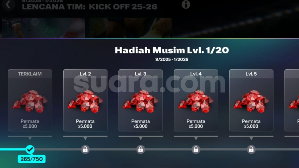 Hadiah utamanya? Tentu saja 2.000 Gems yang bisa kamu pakai untuk berbagai keperluan, mulai dari membeli paket pemain hingga item peningkat skill.