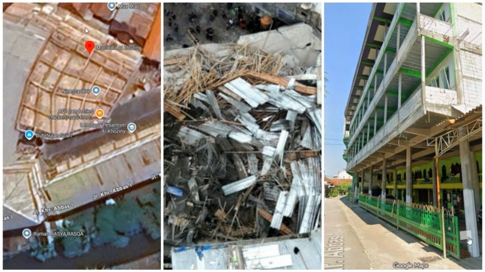 Sebagai referensi, Ponpes Al Khoziny sempat terekam di Google Maps, namun tiba-tiba hilang. Penampakan dari akun @arfasgarden diyakini asli mengingat bangunan yang rubuh di dekat Jalan KHR Abbas 1.