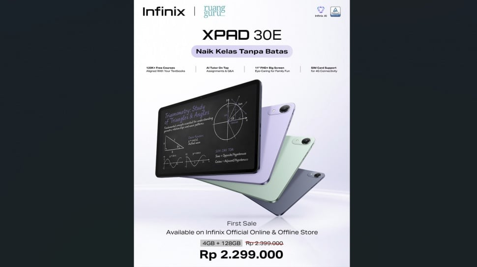- Infinix meluncurkan tablet baru, Xpad 30E, menyasar pelajar dengan harga sekitar dua jutaan rupiah.