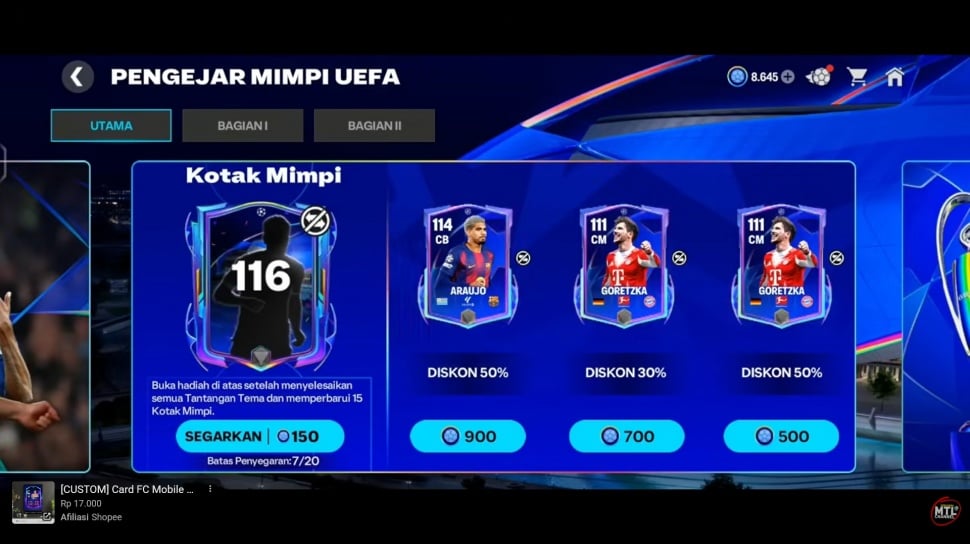 Setelah menyelesaikan tantangan tersebut, kamu perlu melakukan refresh sebanyak 15 kali untuk mendapatkan pemain OVR 116 secara cuma-cuma.
