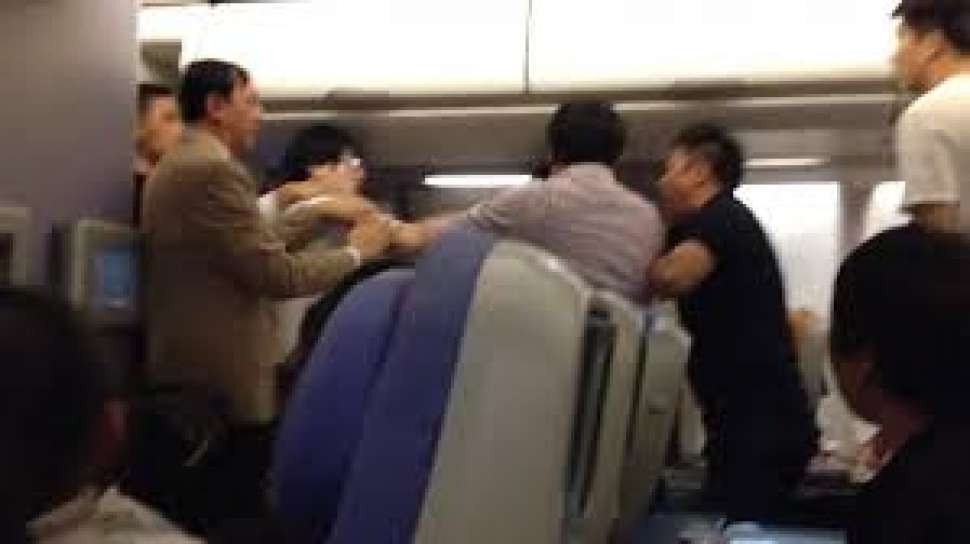 Yang pasti saat perkelahian berhenti, para pelayan pesawat tampak sibuk membantu seseorang yang tampak tak sadarkan diri.