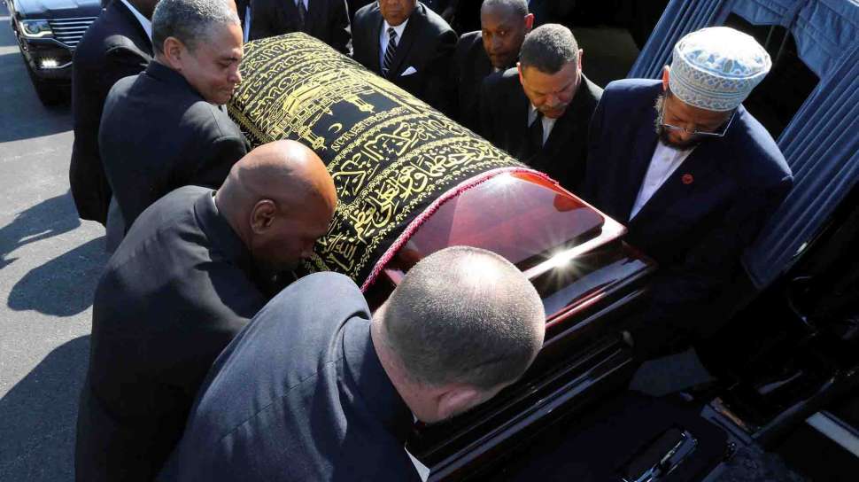 Suara.com - Mobil jenazah yang membawa jasad mantan petinju dunia, Muhammad Ali saat akan dimakamkan di Louisville, Kentucky, Amerika Serikat, Jumat (10/6). Prosesi pemakaman Ali sangat tertib dan ditonton langsung jutaan pasang mata di dunia.