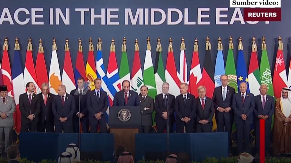 Pernyataan Sisi muncul setelah ia menandatangani dokumen perjanjian gencatan senjata Gaza pada Senin (13/10) dengan Presiden AS Donald Trump, Presiden Turki Tayyip Erdogan, dan Emir Qatar Sheikh Tamim bin Hamad al-Thani, dalam KTT di Sharm El-Sheikh. (REUTERS/ANTARA/Ria Gracia Carolina Simanjunta/Yovita Amalia/Rinto A Navis)