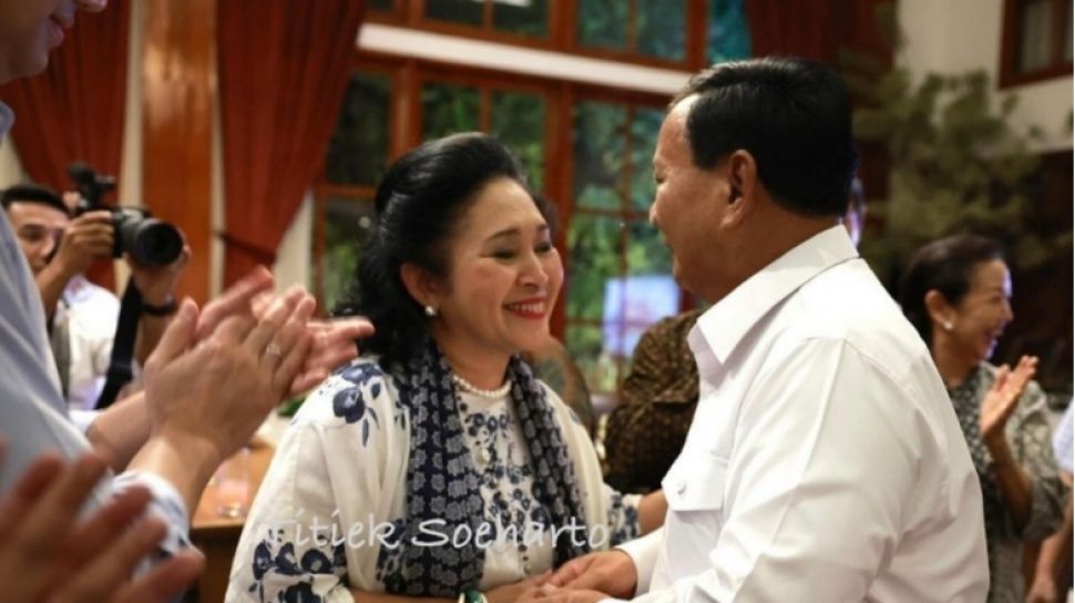 Di tegah sambutannya, Prabowo memberikan sapaan kepada Titiek Soeharto yang merupakan Ketua Komisi IV DPR RI, sekaligus mantan istri Prabowo Subianto.