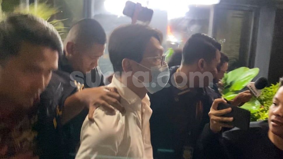 Mengenakan kemeja putih dan celana panjang hitam, Richard Lee yang wajahnya tertutup masker tampak bungkam dan tidak menjawab pertanyaan awak media saat dibawa petugas.